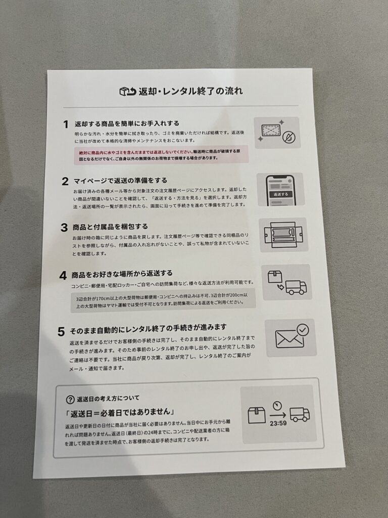 申込はネットで簡単、指定日にちゃんと届いて、返却はコンビニから返すだけ。